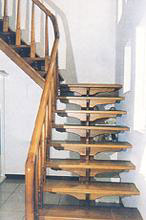 ▲直線傾斜向上式樓梯。這種形式的樓梯比較常見,是傳統(tǒng)樓梯形式。優(yōu)點在于占地面積小,便于老人、兒童活動。買回家后,兩邊再結(jié)合墻壁設(shè)置欄桿和扶手,依據(jù)客廳、走廊和其他部分的室內(nèi)整體風(fēng)格做一些特別的修飾。比如記者在一處別墅中,見到主人家里6歲的小女孩,在樓梯的圍欄上掛滿了她自己折的千紙鶴,祝愿在美國的爸爸早日學(xué)成歸來,很讓人感動。記者在采訪一樓盤時,還見到一種直線梯,是依墻體而建,在設(shè)置鏤空的欄桿,造型與墻裙的裝飾十分協(xié)調(diào),也很不錯。
