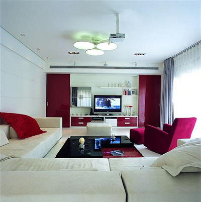 增加色彩是使一間傳統(tǒng)風格的客廳向現(xiàn)代風格轉(zhuǎn)變的最好辦法。無論色彩是靜是動,材質(zhì)是增加細節(jié)的基礎。充滿活力的玫紅色在這間客廳里起到了很重要的作用,通過墻面、軟裝設計提升客廳的現(xiàn)代感??蛷d醒目的色彩,大膽地嘗試玫紅色。茶幾、靠枕、單人沙發(fā)、電視柜均運用了玫紅色,白色與任何色彩都可完美搭配。