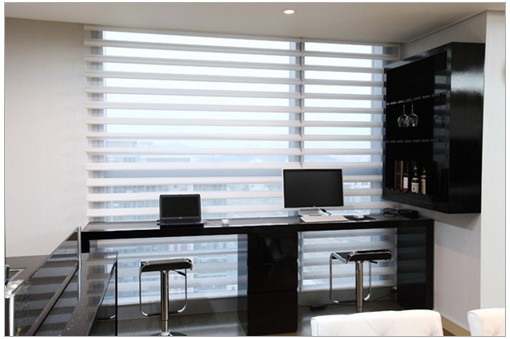 餐廳的另一邊的休閑間,品嘗美酒、玩電腦、從落地玻璃窗欣賞風(fēng)景,在忙碌的都市生活中忙里偷閑。白色的百葉窗、白色的墻壁、黑色的酒柜,再搭配窗外的風(fēng)景,明亮透澈的設(shè)計(jì),使人心境舒暢。
