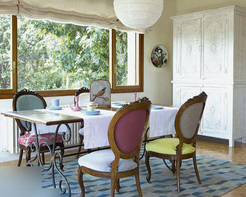 餐廳的配色濃淡相間,家具、家飾的造型更顯古典與內(nèi)斂,餐桌后的壁柜也極具特色。手工描金的邊柜為餐廳增添了華美秀麗之感;大玻璃窗的光影,增加了餐廳的空間動感。