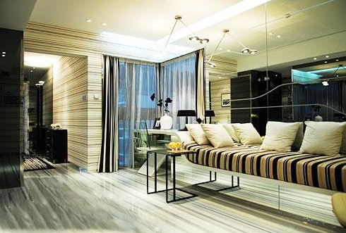 酒紅色就是葡萄酒的顏色,那種醇厚與尊貴會給人一種雍容的氣度、豪華的感覺,所以為一些追求華貴的人所偏愛。沙發(fā)用酒紅色,或在會客區(qū)選一塊老紅色的地毯,會使客廳富麗堂皇。但為不使這種強烈的色調過于擴張,造成視覺疲勞,可以選用一些黑色的家具,以形成對比。墻面選用明亮的米色,加上一點兒藍、黃的襯托,會使豪華的格調中增加一些優(yōu)雅與平易。