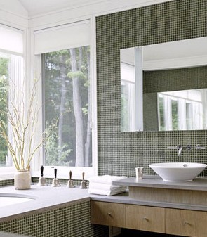 原木材質(zhì)的浴室柜將自然風格蔓延到整個衛(wèi)浴間的設計上,搭配綠色的馬賽克貼面和白色的臺上盆等潔具,給這個衛(wèi)浴間一個天然的表情,讓你忘記壓力。