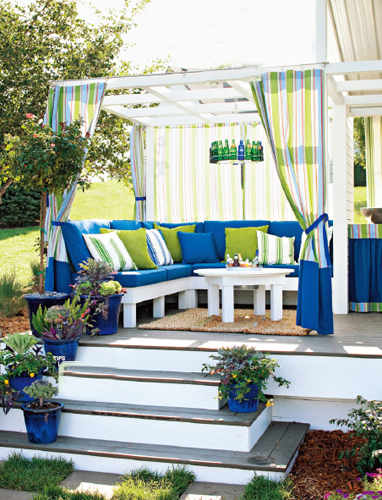 春天的色彩是豐富多彩的,最流行的莫過于白、藍(lán)、綠三種色彩,三色打造一個春意涼亭式露臺。它不僅會成為院子里的一道景觀,也讓你的戶外生活更豐富、更愜意!