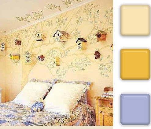 搭配點(diǎn)評:橙黃色墻壁調(diào)動了室內(nèi)跳躍的氣氛,墻上的魚似乎也游動了起來。