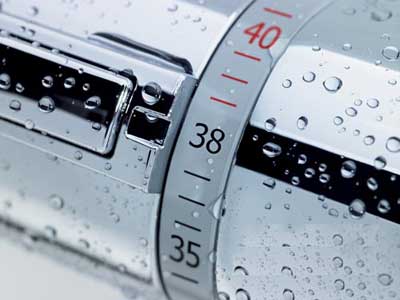 恒溫龍頭的工作原理:在恒溫閥芯的出口處裝有一個熱敏元件,利用感溫元件的特性推動閥體閥芯移動,封堵或開啟冷熱水的進(jìn)水口,在封堵冷水的同時開啟熱水,當(dāng)溫度調(diào)節(jié)旋鈕設(shè)定某一溫度后,進(jìn)入出水口的冷熱水比例也隨之自動變化,從而使出水溫度始終保持恒定。調(diào)溫旋鈕可在35℃—65℃之間任意設(shè)定,恒溫混水器將自動維持設(shè)定的出水溫度。