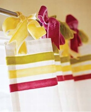 3種不同的水果色調(diào)天鵝絨絲帶使平白的布環(huán)窗簾變?yōu)檠胖碌难b飾。
