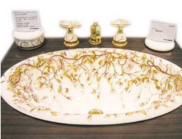 肥皂碟、牙刷杯等洗漱用品可以變成藝術(shù)品?你難以想象。然而,設計師就有足夠的想像力將它們演繹成陶瓷藝術(shù)品。肥皂碟呈現(xiàn)一個小小的扁圓形,有意思的是位于扁圓形中央的圖案設計?D?D?D一張自然攤開的紅楓葉,看上去就像秋天楓樹上不經(jīng)意間落下的一片楓葉,悄悄地在一個陶瓷小碗上安了家。楓葉的紅,陶瓷制品的晶瑩剔透,兩者融合在一起,確實給予衛(wèi)生間一種別樣的美感。