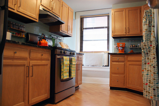 一般情況下,廚房的面積都不大,所以給人的感覺是設(shè)計(jì)和裝修起來都很容易,但是因?yàn)閺N房里的零碎東西特別多,所以真正規(guī)劃起來又會有很多煩瑣的小事,廚房又是一個(gè)最容易堆積油煙的地方,用了比較容易清洗的瓷磚,這里的瓷磚顏色也不是純白的,也是帶淡淡灰色的。其次用了大量的防水防火櫥柜,清潔的時(shí)候也能比較省事。廚房的柜體則用了純實(shí)木的面板。
