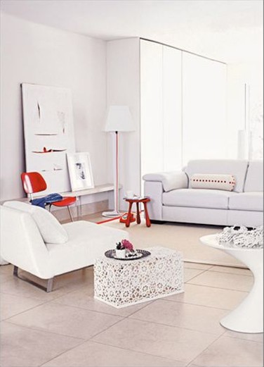 白色是室內(nèi)設(shè)計的最為重要的色彩之一,它和諧、統(tǒng)一同時又混合了優(yōu)雅、高貴,給人以舒適溫暖的家的感覺。白色可以與任何顏色相配,但是每一種組合的效果和基調(diào)又各不相同,與淺色搭配,精致而浪漫,與原色相配,明亮而熱烈。因為白色具有強烈放射光線的能力、擴大任何現(xiàn)存的光線,它可以使一個房間看上去更明亮。