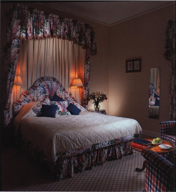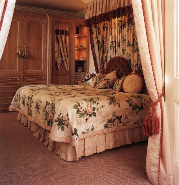 將帷幔的設(shè)計(jì)局限于床頭,與其說具備實(shí)際的遮擋作用還不如說就是為了純粹裝飾而進(jìn)行的設(shè)計(jì)。上圖中向我們展示了帷幔設(shè)計(jì),溫和中透露出淡淡的高雅,成為臥室軟裝飾中的一處妙筆。