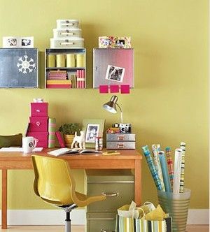 組合型的儲(chǔ)物方案無(wú)疑是最經(jīng)濟(jì)實(shí)用的一種,將壁柜和儲(chǔ)物盒等一類收納工具搭配使用,即使你的房間很小,也能將工作區(qū)打理得美觀又方便。