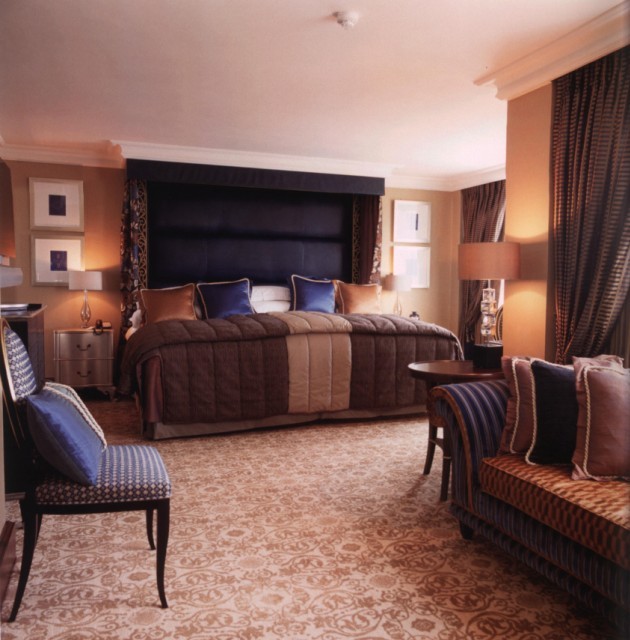 概要: 自然、優(yōu)雅、高貴是英倫風(fēng)情的代名詞。這個英倫風(fēng)情的臥室里,大面積的地毯的設(shè)計使其成為室內(nèi)空間中軟裝飾的主角,地毯在色彩的選擇上與空間的主色調(diào)保持一致,用棕色突出一種低沉、內(nèi)斂的空間氛圍。 如宮殿般高貴的拱門設(shè)計、精致的吊頂、諾大的水晶燈……對于相對開闊的公共空間而言,大面積地鋪設(shè)地毯能夠渲染出大氣、高檔的空間氛圍。