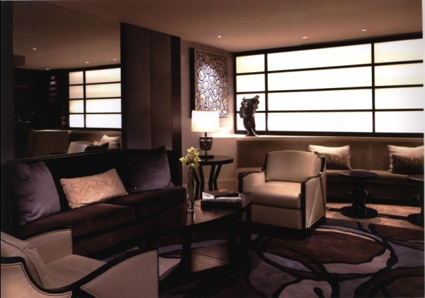 地毯不僅僅只有圖案才能出彩,在這個空間的裝飾設(shè)計中,相對于圖案的設(shè)計,地毯的色彩被更加突出,用濃重的色彩來渲染空間的厚重、濃郁的氣氛,使人能夠不自覺地受到其強(qiáng)烈的感染力。