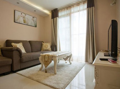 客廳的整體布置顯得寬敞大氣,采用了淡雅的色調(diào)。大大落地窗,形成了極好的采光。松軟厚實的深色沙發(fā),讓人倍感舒適。抱枕和茶幾上的臺布復(fù)古花紋,提升了居家的品質(zhì)感。帶有復(fù)古風(fēng)格的茶幾和電視柜,線條優(yōu)美,給原本簡單的布置增添了別樣的風(fēng)情。茶幾下鋪就的地毯,增添了客廳的舒適度。