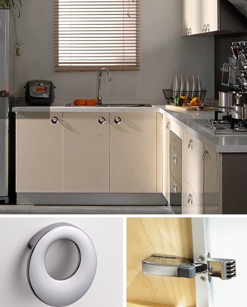 米色的木質柜面清新淡雅,搭配白色的仿石柜面時尚之余不失清秀,圓環(huán)形的拉手不僅使我們使用更方便,也使方正的櫥柜增添幾分柔和。淺米色的柜面自然中帶點小溫馨,簡單干練的磨砂銀色拉手體現(xiàn)出現(xiàn)代的時尚風格,黑色的仿大理石柜面有股低調的奢華感覺,整個櫥柜清新又不失高雅。