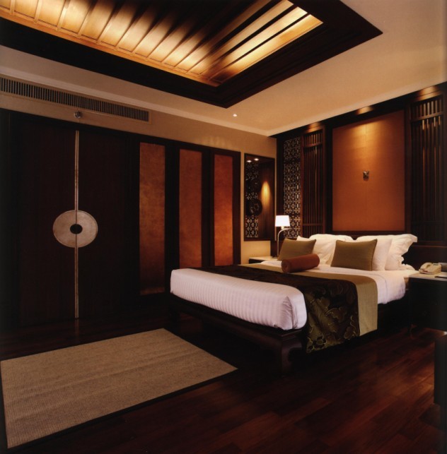 這個東南亞風情的臥室,在空間設(shè)計中,更多地運用了木質(zhì)材質(zhì)作為裝飾的主要材質(zhì),用深色調(diào)的色彩來烘托出古色古香的裝飾效果,為了強調(diào)色彩對比,床的設(shè)計則采用了白色和淺綠色的淺色,進而形成混搭的裝飾風格,給人留下深刻的印象。