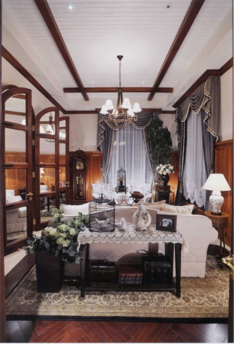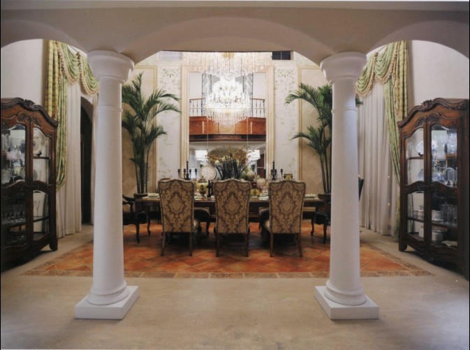 圓拱形門(mén)洞、門(mén)以及窗的別墅設(shè)計(jì),在第一時(shí)間將人們帶入了一個(gè)溫馨而優(yōu)雅的居室環(huán)境。本套案例的設(shè)計(jì)以咖啡色為基調(diào)色,點(diǎn)綴一些暗紅色,使得整個(gè)空間的貴氣有了很大程度地提升。柔軟的暖色調(diào)燈光,使得家具與家具,空間與空間之間的流線更加自然、流暢。大型旋轉(zhuǎn)樓梯給傳統(tǒng)的空間帶來(lái)了動(dòng)感??蛷d中的假窗裝飾是室內(nèi)設(shè)計(jì)的一個(gè)亮點(diǎn),它與客廳門(mén)的造型相得益彰。同時(shí),穿入戶(hù)上的玻璃用鏡面來(lái)代替,使得室空間在鏡面的反射下,得到了視覺(jué)上延伸和擴(kuò)展,也給這個(gè)看似規(guī)整的客廳增添了異樣的生活趣味。