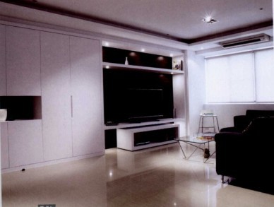 電視柜連接玄關(guān)鞋柜,并以深色斑馬木紋與白色噴漆。創(chuàng)造出高反差的對(duì)比效果,將極簡(jiǎn)風(fēng)格的設(shè)計(jì)發(fā)揮淋漓盡致。電視柜采用活動(dòng)式設(shè)計(jì),以利日后視聽(tīng)設(shè)備的增添。