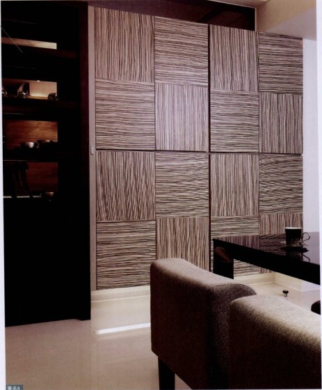 柜子本身就是空間最好的裝飾,木質(zhì)墻面同時具備了主墻的裝飾效果,餐桌對面的收納柜,運(yùn)用了不對紋路的8片門與十字溝縫處理,營造了柜體的另一種風(fēng)格。