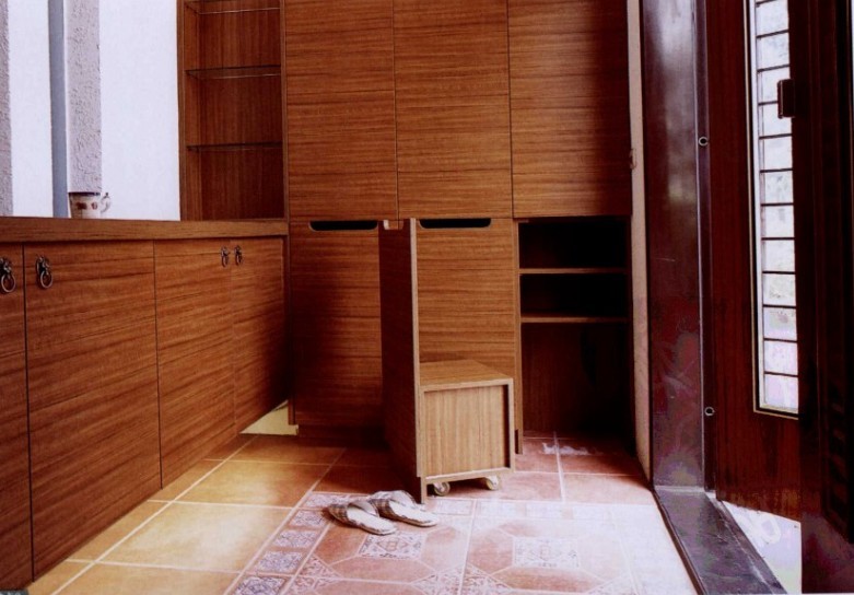 概要: 業(yè)主期望有個鄉(xiāng)村風(fēng)格兼具豐富收納的居家。設(shè)計(jì)師以集成材完成室內(nèi)90%的木作,搭配優(yōu)質(zhì)五金配件,來滿足業(yè)主對各種收納柜及展示柜的需求。同時活用柚木集成板,使墻面融入整體空間中,而柚木深淺顏色不同而產(chǎn)生變化感,營造出鄉(xiāng)村風(fēng)格。玻璃層板加燈光突顯收藏品 鞋柜除了用來收納鞋子及相關(guān)雜物外,設(shè)計(jì)師還為有許多收藏品的業(yè)主設(shè)計(jì)了玻璃展示層板,并通過燈光突顯收藏品。