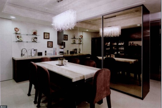 概要: 本案的業(yè)主是一位擁有自己事業(yè)的職業(yè)女性,對于穿著與飾品的搭配相當(dāng)重視,明確地表達(dá)其需要有足夠的空間來收納名牌包包及鞋子。設(shè)計師在規(guī)劃空間時,即把其需求融入,鞋類的收納主要在于入門玄關(guān),以雙面柜擴大收納空間。玄關(guān)天花板以業(yè)主最愛的水晶搭配鏡面,以LED燈營造出如繁星般的效果。