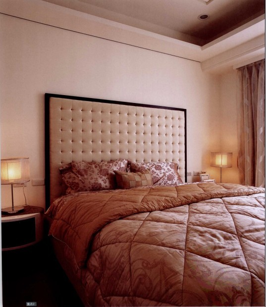 本身臥室的空間不大,設(shè)計師沒有沿著傳統(tǒng)手法,在床頭規(guī)劃床頭柜,而是以造型矮柜收納床頭的雜物。
