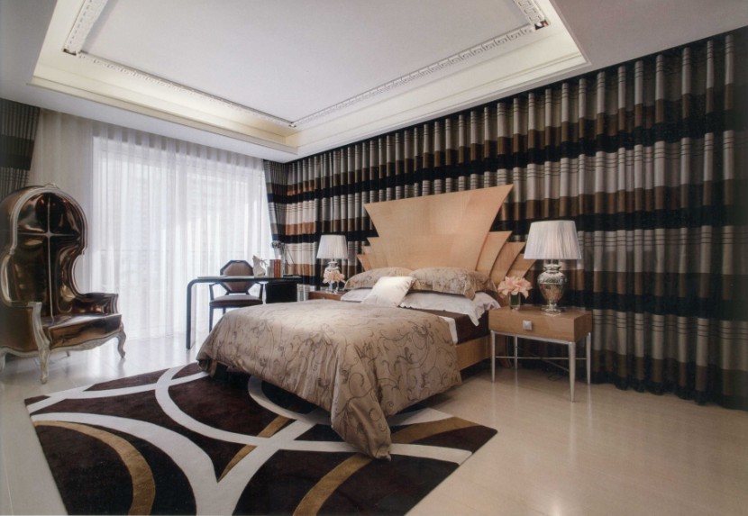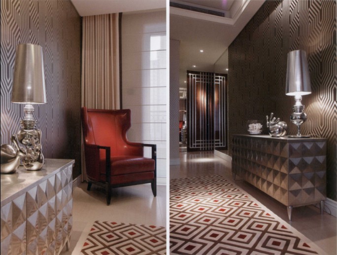 本戶型面積較大,為了打造富豪門第、都會城堡般的格調(diào),大量運用對比強烈的色彩,耀眼夸飾的藝術造型突顯其不凡,以展現(xiàn)時尚莊園豪邸的大氣尺度。在空間裝修上,設計師運用西方古典工藝的嚴謹精湛手法,同時將東方文藝復興的精神注入其中。整體空間氛圍傳遞著西方的浪漫,卻也輕訴著東方的曼妙----透過古典與現(xiàn)代裝飾藝術的交匯融合,顯示出復古、融匯、創(chuàng)新與再生的精神。老上海的清新魅力,為空間注入豐碩的生命力,也為居住者帶來全新的心靈悸動。
