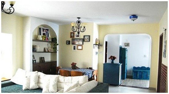 地中海首先映入眼簾的就是那片經(jīng)典的海藍(lán),為了在視覺(jué)上第一眼就渲染出濃郁的地中海風(fēng)情,客廳整體色調(diào)為藍(lán)白色,空間多選白色,再飾以明媚的天藍(lán),明朗又干凈,讓人仿佛徜徉在海洋之上。