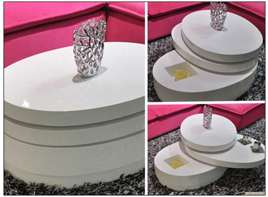 這款茶幾可以360度全方位分層旋轉(zhuǎn)。隨意變換造型,方便多種場合使用。底層設(shè)計(jì)有儲物空間,可放置一些零碎物品。