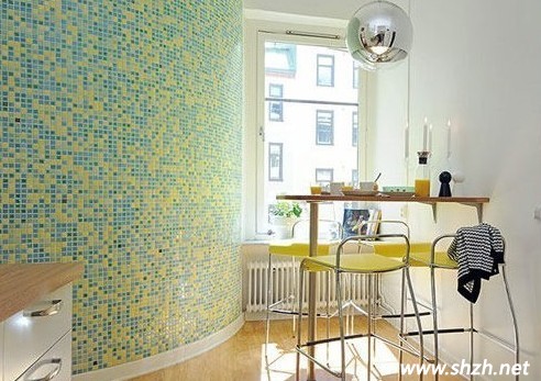 由于陶瓷馬賽克瓷磚具有良好的防滑性,在家居裝飾中的應(yīng)用也比較廣,特別是衛(wèi)生間、陽臺、浴室等空間。在大型公共場館,陶瓷馬賽克也被用來拼成壁畫等圖案,用以顯示陶瓷馬賽克的超凡魅力。