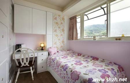 臥房各有特色,利用飾以不同色馬賽克的門片外觀,示意男孩與女孩房的動線方向,**色系的小女兒房,搭配精巧可愛的造型椅,滿足女孩喜愛的夢幻感。