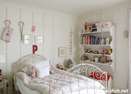雖說(shuō)新婚夫婦沒(méi)有那么快有小孩,但是給未來(lái)的小孩準(zhǔn)備他們應(yīng)有的獨(dú)立空間是必要的。代替壁畫(huà),用可愛(ài)的雕飾點(diǎn)綴墻壁,搭配浪漫少女公主風(fēng)的鐵藝床,讓小孩的房子也有甜甜的味道。