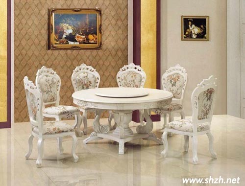 大理石與玻璃等桌面較為堅(jiān)硬、冰冷,藝術(shù)感較強(qiáng),但因其易迅速吸收人體飲食后產(chǎn)生的能量,不利于就餐者的坐談交流,因此不宜全部用于正餐桌,但可以通過形狀和質(zhì)地進(jìn)行調(diào)和,比如:圓形的大理石餐臺(tái)或方形木桌等,有這些組合會(huì)帶來良好的效應(yīng)。