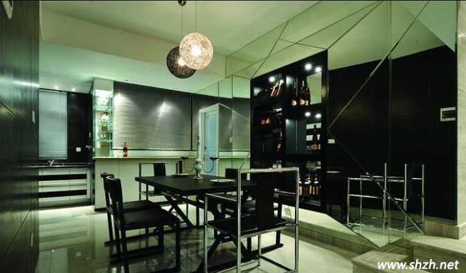 餐廳銀鏡勾勒出幾何形體的鉆石面,把黑色皮紋磚的細(xì)膩、不銹鋼的精美與雅致襯托得淋漓盡致,高檔且時(shí)尚。開敞的流動(dòng)空間中,所蘊(yùn)含的是空間的品質(zhì),摒棄多余的裝飾,保留材質(zhì)本身的美感與形體的純粹,使空間呈現(xiàn)出多元的藝術(shù)元素與生活情趣。一個(gè)空間的設(shè)計(jì),表達(dá)了一種情愫,也是一種生活方式的體現(xiàn),這不僅把整體的立體感發(fā)揮出來,從中也透露出了很多的文化內(nèi)涵。