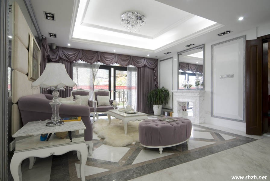 家具:用簡(jiǎn)化的手法、現(xiàn)代的材料和加工技術(shù)去追求傳統(tǒng)樣式的大致輪廓特點(diǎn),其中白色與紫色是歐式風(fēng)格中常見的主色調(diào),紫與白的搭配使色彩看起來明亮、大方,整個(gè)空間也給人以開放、寬容的非凡氣度。