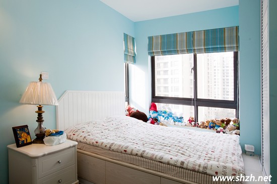 再來(lái)看下臥室的裝修,淡藍(lán)色的墻壁,使整個(gè)室內(nèi)溫度瞬間降低了幾度。而且藍(lán)色本身給人的感覺(jué)就比較清靜,它源于大海洋的顏色,非常的清涼舒適。