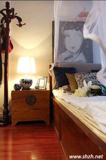 最后看臥室的設(shè)計(jì),家具都是實(shí)木的,原色的,地板也是實(shí)木打造,造就了家里的主色調(diào),自然的味道濃厚。經(jīng)濟(jì)奢華的床品,及床頭邊上的掛畫和裝飾掛件,更是將混搭風(fēng)進(jìn)行到底。