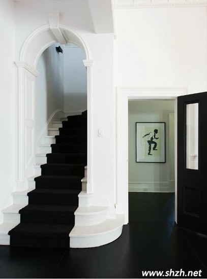 樓梯的設(shè)計很有特色,黑白搭配設(shè)計,既古典,又顯時尚的氣息。