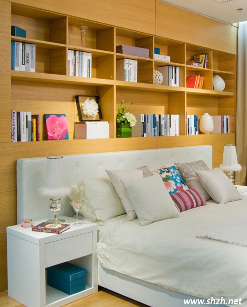 還想沒大家稱之為亂家女王嗎?或許這并不是你的本意,可大大小小的小飾品、各式各樣的裝飾擺件以及經(jīng)常要翻越的書籍在不知不覺間都讓你的臥室變得慘不忍睹了,那么為何不干脆利用床頭空間來做一個收納型的書柜,讓你的這些小物品都乖乖的呆在里面,這樣臥室想不干凈都難啦!