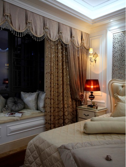 凸窗臺也可有很好的利用價值;暗紅的臺燈增加了臥室的情調(diào);