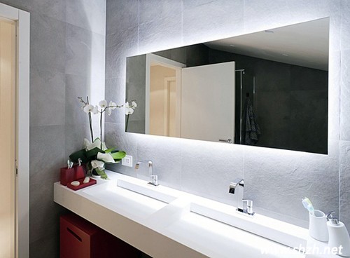 浴室當然也是裝修的重要一部分,考慮到了光線的不足,在鏡子后面特別設置了燈具,從鏡子后面照射出來的光線,帶著柔和的感覺,雖然不是很強烈,卻足以照亮這一整個區(qū)域,而且,這樣的設計,不僅時尚美觀,還盡顯主人高貴的氣質(zhì)。