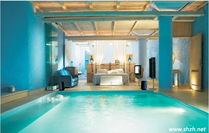 海底的世界讓您徜徉在海洋的世界里面,但是這款創(chuàng)意的設(shè)計(jì),更能俘虜您的心,設(shè)計(jì)師巧妙的將商業(yè)區(qū)域的游泳池搬到了臥室內(nèi),而且就設(shè)計(jì)再了床腳。如果想游泳了,可以隨時(shí)隨地的下床游玩,整個(gè)臥室的空間采用了藍(lán)色作為主色調(diào),與游泳池的色彩搭配的十分協(xié)調(diào),藍(lán)色來(lái)自于海洋的顏色,給人以清涼的感覺(jué),而這樣創(chuàng)意的臥室設(shè)計(jì),會(huì)不會(huì)倍感清涼呢?讓酷熱的夏季遠(yuǎn)離我們吧!