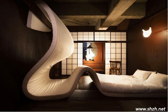 蛇造型的臥室,也許很符合2013年的設(shè)計(jì)風(fēng)格哦!一眼望去,最大的亮點(diǎn)莫過(guò)于這張床了,創(chuàng)意的設(shè)計(jì),讓人既驚喜又害怕。驚喜的是,這樣創(chuàng)意的設(shè)計(jì),讓家中一沉不變的臥室變得新奇而古怪,也讓人的心情變得十分欣喜。而害怕的是床的設(shè)計(jì),床墊造型就像盤(pán)曲著的蛇,難免會(huì)讓人深感害怕。不過(guò),如果您不怕蛇的話,這款設(shè)計(jì)可是創(chuàng)意十足哦,不僅功能強(qiáng)大,新奇的造型也會(huì)讓你過(guò)目不忘,非常神奇吧!
