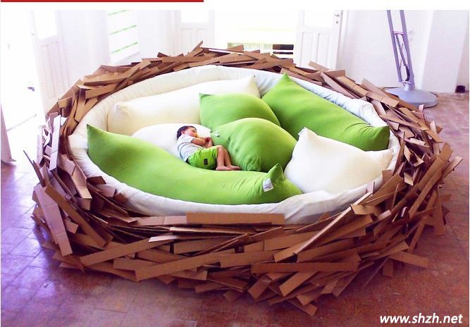 終于可以看到一款讓人心情平和的設(shè)計(jì)了,造型可愛(ài)的床造型,童趣十足,這是專(zhuān)門(mén)為小孩子設(shè)計(jì)的床,模仿了鳥(niǎo)巢的造型,說(shuō)到這,你就可以想象了,不單是一張床那么簡(jiǎn)單,也許還寓意著“早起的鳥(niǎo)兒有蟲(chóng)吃”,小孩子,要早睡早起,這樣才能精力充沛過(guò)好每一天。