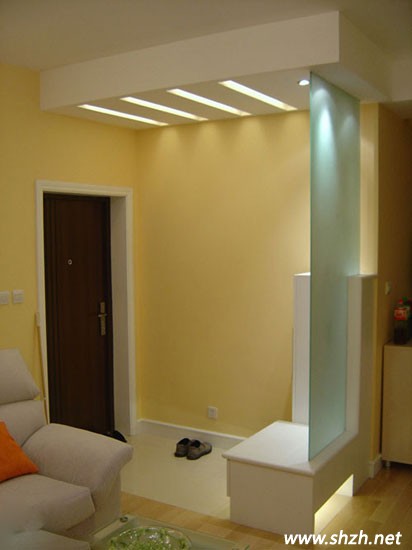 很多時(shí)候,狹小的空間更容易讓人忽視它的重要性。其實(shí),任何區(qū)域都有可能變成家中一道亮麗的風(fēng)景。這款設(shè)計(jì),首先采用了溫暖的黃色為主色調(diào),使得空間變得明亮而溫馨,而玄關(guān)的巧妙的采用了毛璃進(jìn)行隔斷,鑲嵌在白色梯形收納柜上,整體十分協(xié)調(diào),美觀而大方。