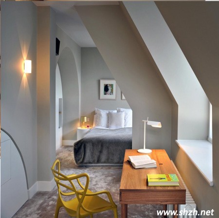 工作臺的設(shè)計,在閣樓窗戶邊上,設(shè)計了一個書桌,不僅充分考慮到這個區(qū)域的安靜環(huán)境,也充分利用了光線這些效果,學(xué)習(xí)閱讀也有了充足的光線,很好的保護了視力,非常實用。