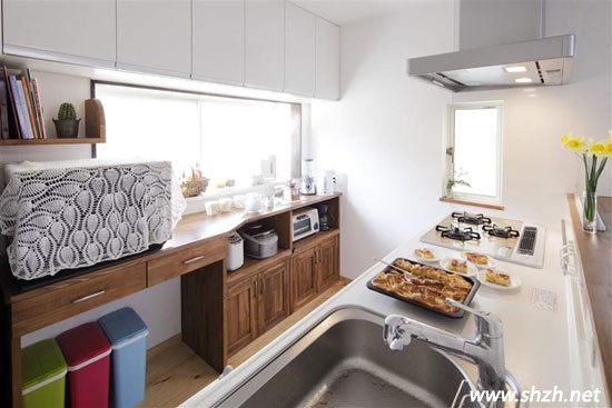 美味從廚房開始,可知廚房是家裝中重要的裝修空間。而我們知道,廚房的各種烹飪用品以及調(diào)料亦或者一些碗具之類的大大小小的東西特別的多,因此,廚房的收納是一大挑戰(zhàn),特別針對于小戶型空間,必須要將空間利用到極致。下面我們就來看下日式風(fēng)格的廚房裝飾,是如何做到極致收納的。