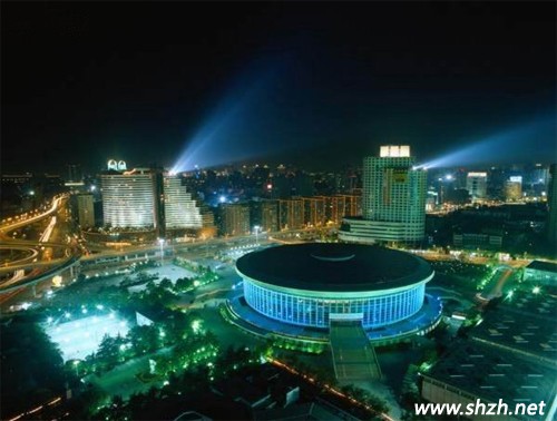 上海萬人體育館(簡稱“萬體館”或“上體館”),坐落在上海西南地區(qū),著名的華亭賓館對面,原名一九七五年建成使用。主館呈圓形,高33米,屋頂網(wǎng)架跨度直徑110米,可容納觀眾18000人。一九九九年經(jīng)改建,新增1250平方米的雙層舞臺,設(shè)施先進(jìn),是目前國內(nèi)首家劇院式的體育館??沙薪痈黝愇乃囇莩?、大型體育比賽、**、大型展覽等等,觀眾容量仍可保持在12000人左右。