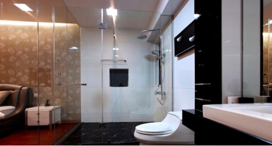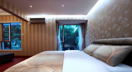 由于本案是二層的疊墅,負一層還有一個比較大的空間,設(shè)計成一個大開放式書房,另加一個客房,還有工人房兼儲物間。另外,一樓過道通過墻體的改動拓寬了,使空間拓寬;