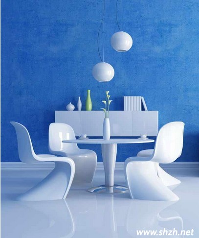 藍色在裝飾中常常是一種地種海風情設計的體現(xiàn)。它能讓人在家居空間中體會到寧靜的氣氛,一切的喧囂擾嚷似乎都被這種寧靜的氣氛隔絕在了屋外。無論在外有多么的疲憊與煩躁,回到家,回到這個寧靜的港灣,一切壓力都可以被它包容、被它融化。生活變得簡單而舒適。藍色對于個人而言還具有調節(jié)神經和鎮(zhèn)靜安神的作用。藍色給人的感覺是清新淡雅,與各種水果色彩相配也很養(yǎng)眼,但在家居中重點有兩個地方不宜用到藍色,那就是餐廳和廚房。藍色在色系中屬于冷色系,若餐具用藍色會影響食欲,同時,餐廳中不宜安裝白熾燈或藍色的情調燈,科學證明,食物在藍色燈光的照射下看起來不誘人。但是,若在衛(wèi)浴間使用藍色,卻能強化神秘感和隱私感,值得一試。